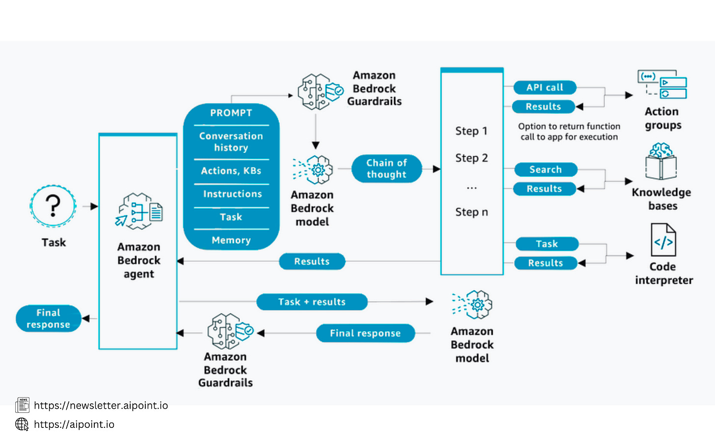 Over the last few months, I've been working with Amazon Bedrock's Agents, and I wanted to share how these AI agents actually work on AWS. Here's a breakdown of the key components that make it all happen: